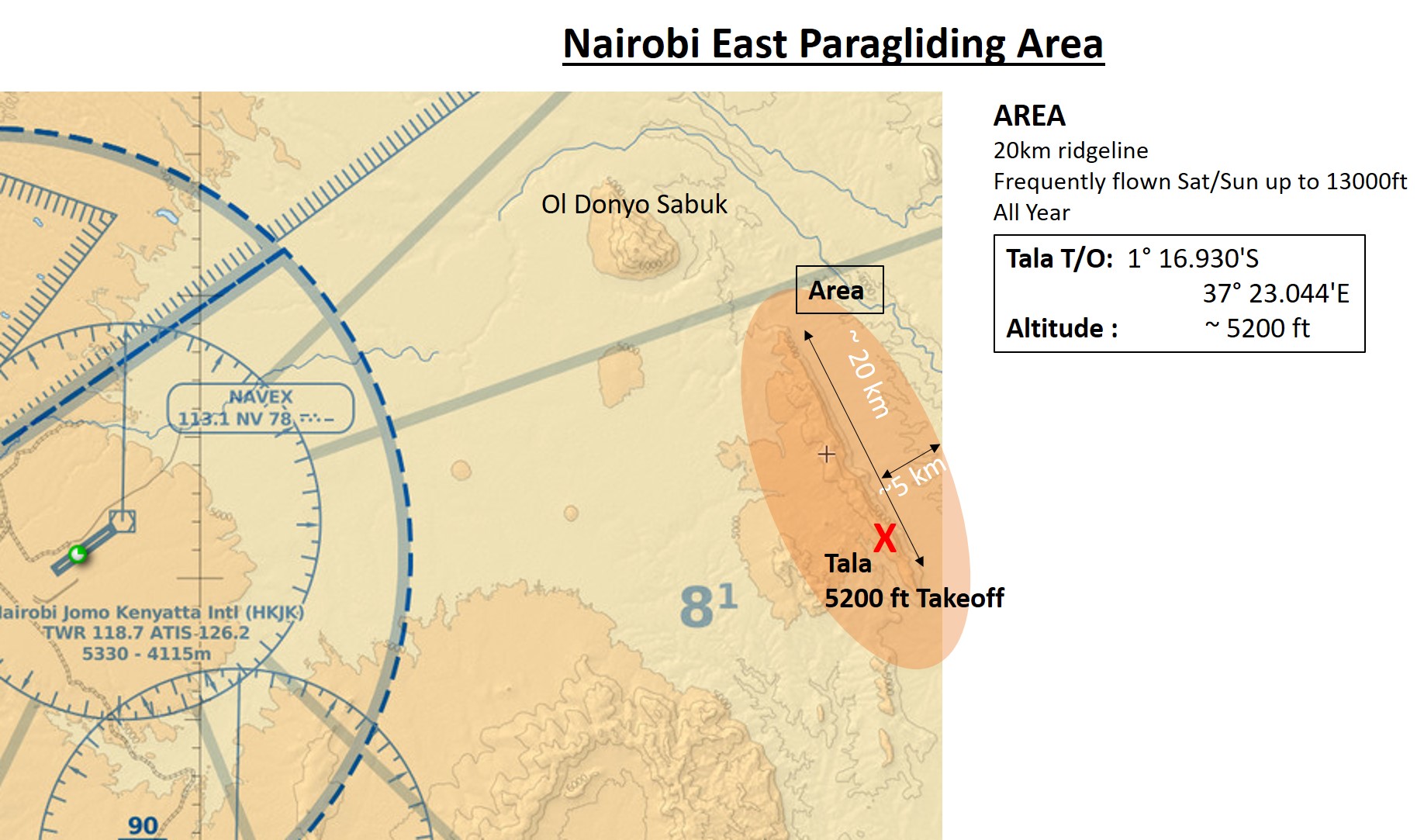 From the ridge you can easily connect to an XC flight at midday. Be aware of the Nairobi CTR airspace to the south of the spot!